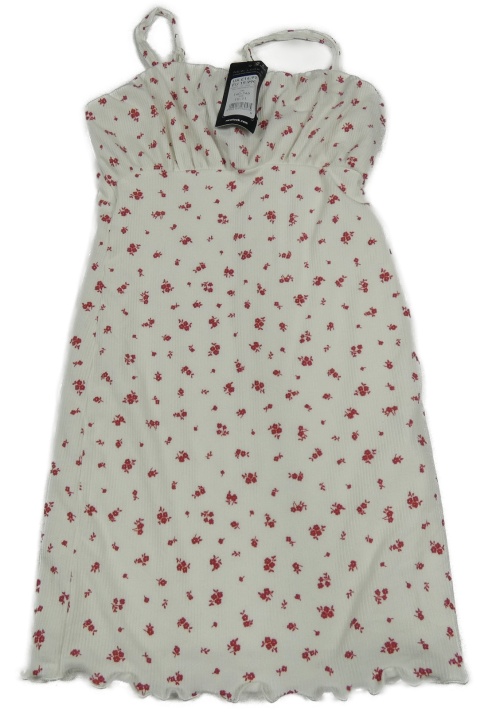 Nové - Smetanové žebrované elastické šaty s kvítky New Look