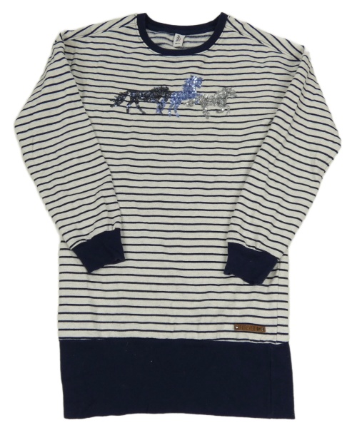 Šedo-tmavomodré pruhované teplákové šaty s jednorožci z flitrů Yigga