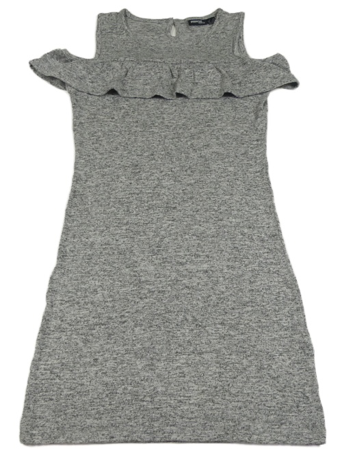 Šedo-bílo-černé melírované úpletové šaty s volánkem a volnými rameny Pepperts!