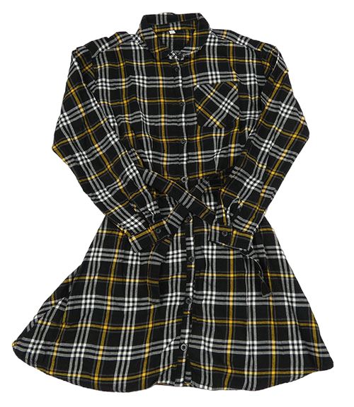 Černo-bílo-hořčicové kostkované propínací košilové šaty s páskem C&A