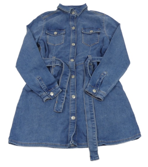 Modré teplákové riflové propínací košilové šaty s páskem C&A