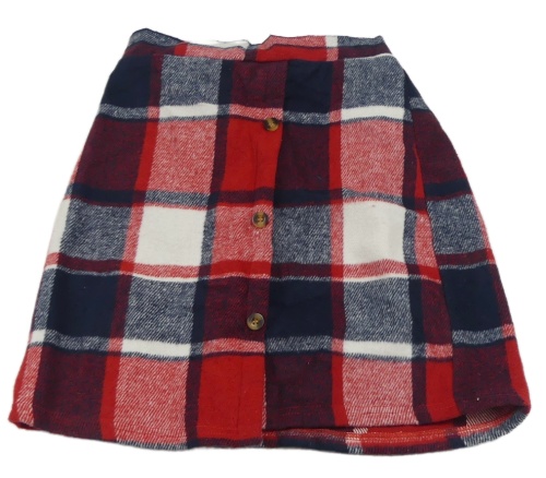Tmavomodro-červeno-bílá kostkovaná vlněná sukně s knoflíky
