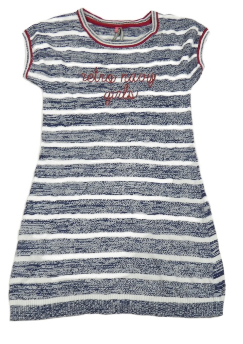 Tmavomodro-bílé pruhované melírované pletené šaty s nápisy ORCHESTRA