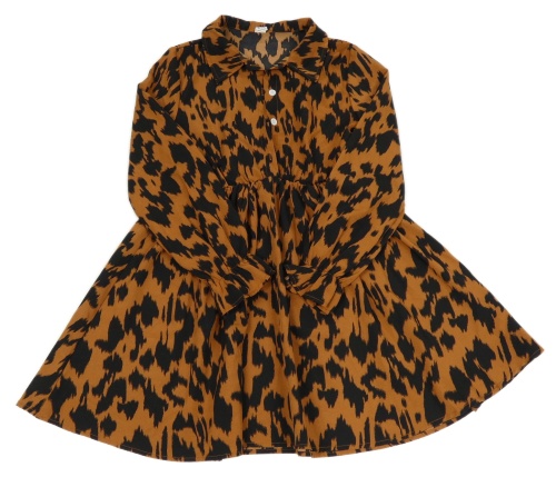 Hnědo-černé vzorované lehké šaty s límečkem Shein