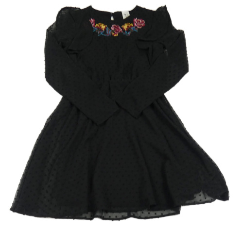 Černé šifonové 3D puntíkaté šaty s růžemi C&A