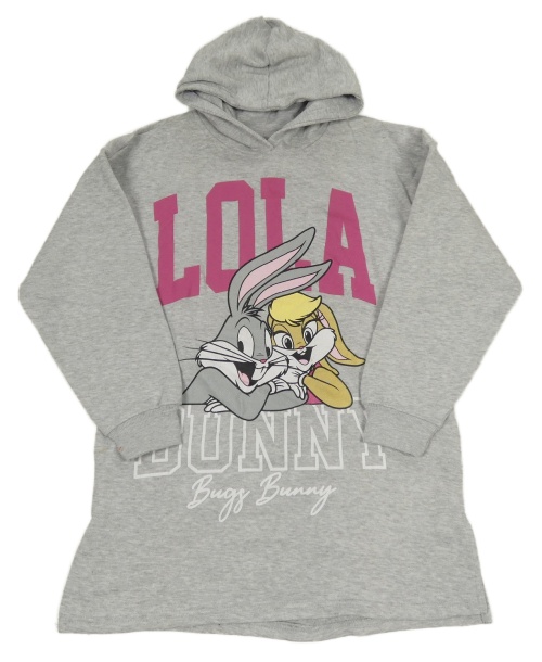 Šedé melírované teplákové šaty s Lolou s Bugs Bunnym a kapucí