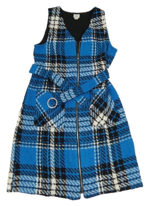 Modro-černo-bílé kostkované úpletové propínací šaty s páskem River Island