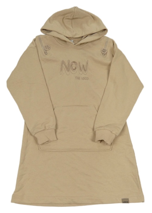 Béžové teplákové šaty s nápisem a kapucí LocoLoco