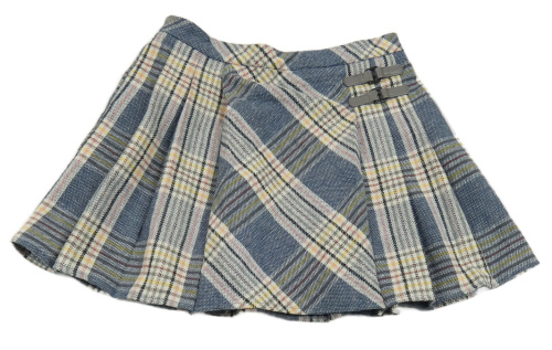 Béžovo-modro-růžová kostkovaná vlněná sukně George
