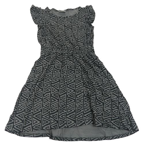 Tmavošedo-černé vzorované šaty s volánky YIGGA