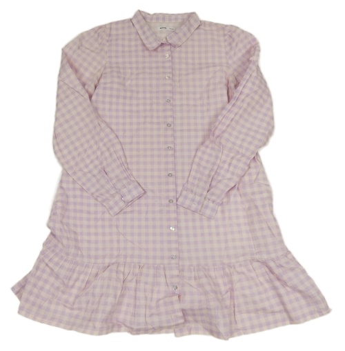 Světlerůžovo-levandulové kostkované plátěné propínací košilové šaty sinsay