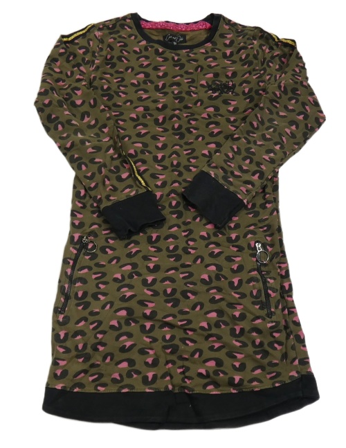 Khaki-černo-růžové vzorované teplákové šaty s nápisem