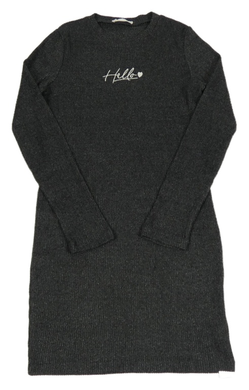 Tmavošedé žebrované pletené šaty s nápisem Primark