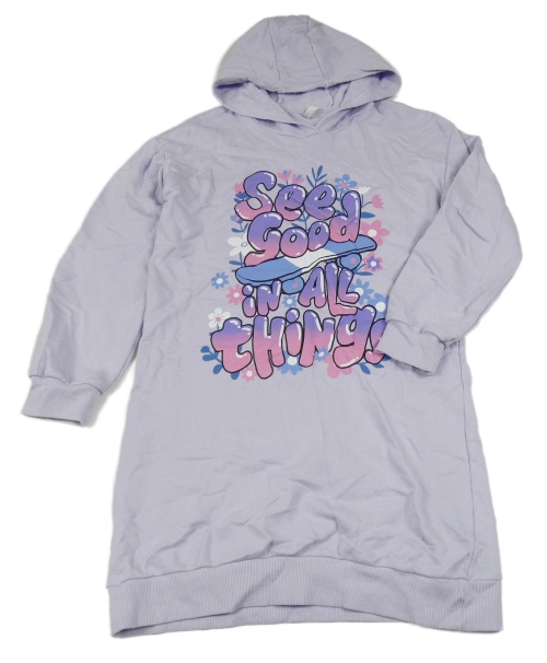 Lila teplákové šaty s nápisem a kapucí