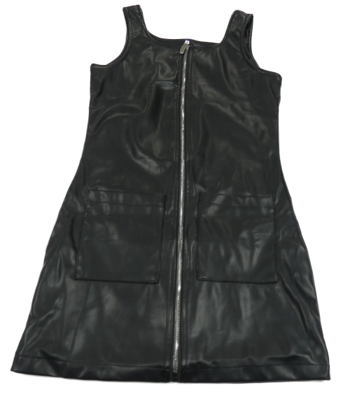 Černé propínací koženkové šaty s kapsami Y.F.K.