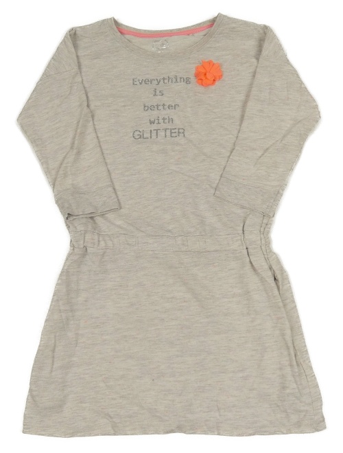 Šedo-neonové melírované teplákové šaty s nápisem a květem