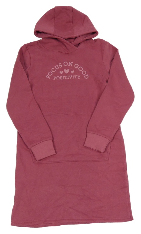 Světlevínové teplákové šaty s nápisy a srdíčky a kapsou a kapucí YIGGA