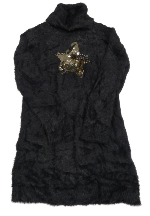 Tmavošedé chlupaté svetrové šaty s hvězdou z pajetek a rolákem Inextenso