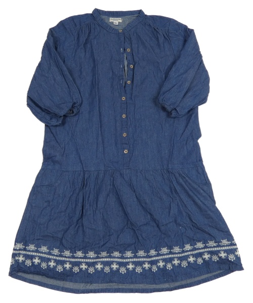 Tmavomodré plátěné šaty s výšivkou Vertbaudet