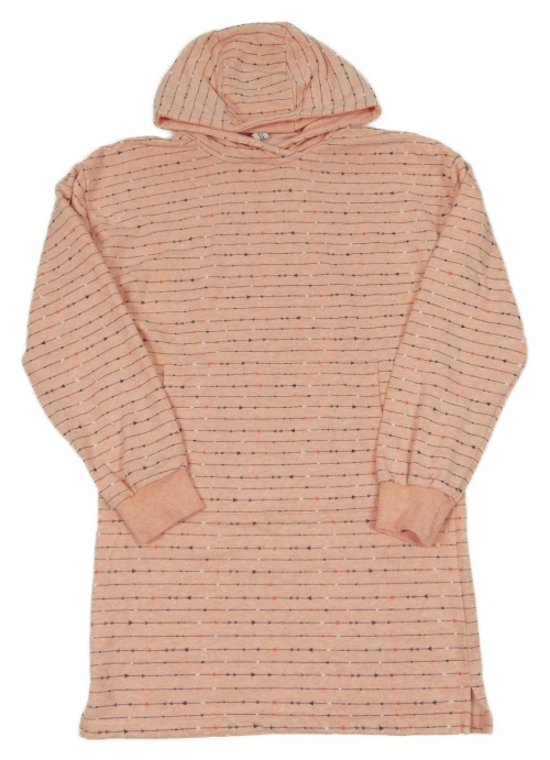 Růžovo-šedé pruhované teplákové šaty s klokankou a kapucí Yigga