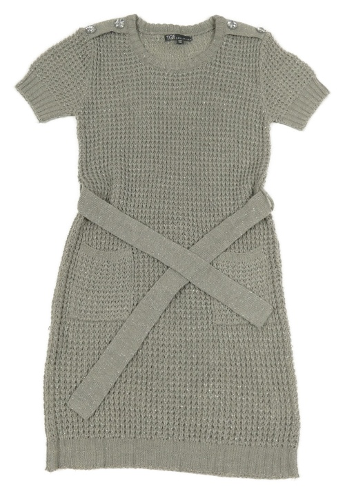Šedé třpytivé pletené šaty s páskem