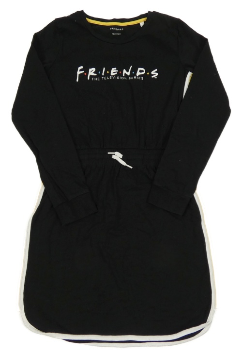 Černé bavlněné šaty s nápisem a proužky