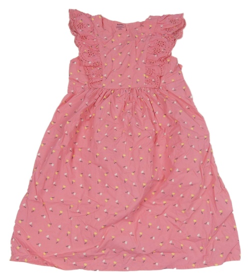 Růžové plátěné šaty s kytičkami a volánky s madeirou KIABI