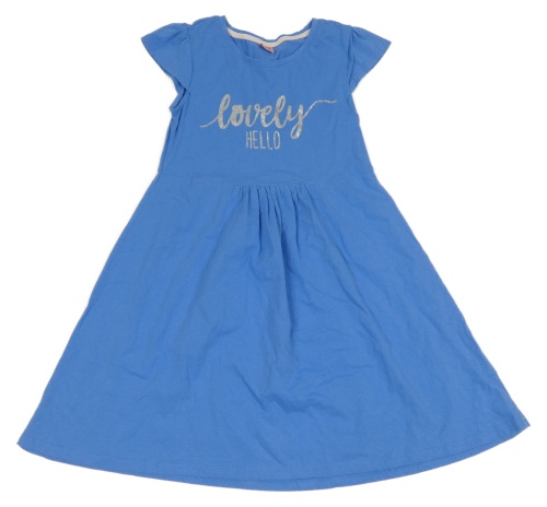 Modré bavlněné šaty se stříbrným nápisem Y.F.K.
