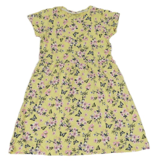 Světležluté šaty s květy a větvičkami a motýlky a volánky Y.F.K.