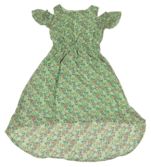 Zelené šifonové květované šaty s volnými rameny Y.F.K.