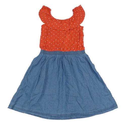 Jahodovo-modré šaty s puntíky a riflovou sukní Yigga