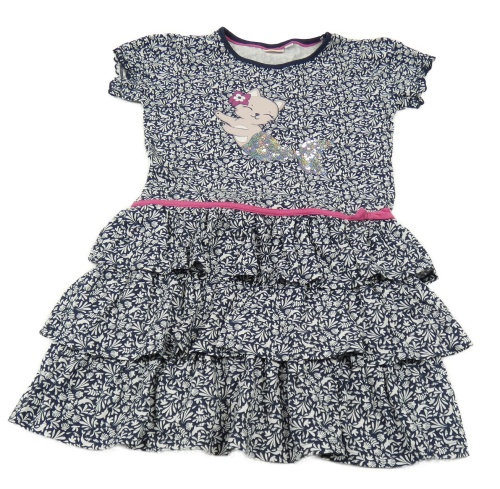 Tmavomodro-bílé šaty s kočičkou/mořskou pannou s flitry a volánky Kids