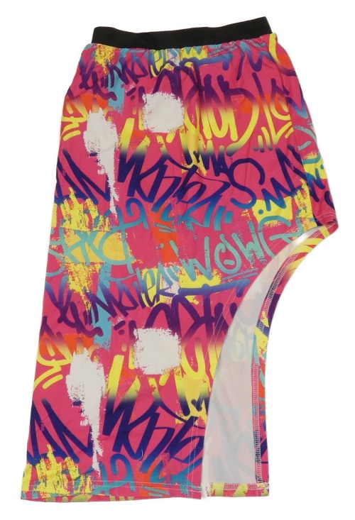 Tmavorůžovo-černá asymetrická dlouhá sukně s g raffiti nápisy SHEIN