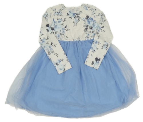 Smetanovo-světlemodré šaty s květinami a tylovou sukní Shein