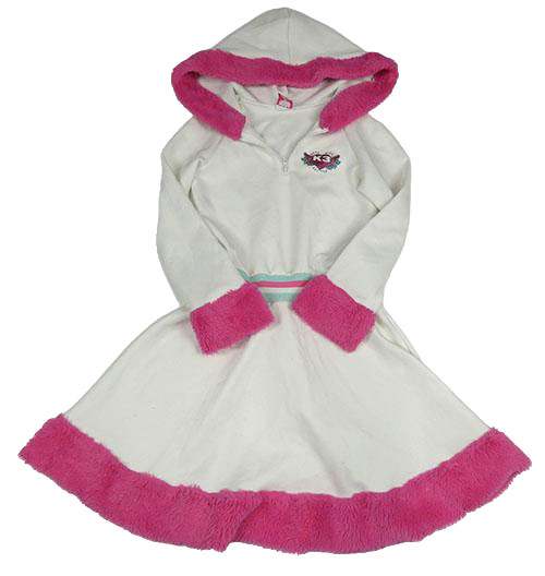 Smetanové šaty se srdcem a kapucí s kožešinou