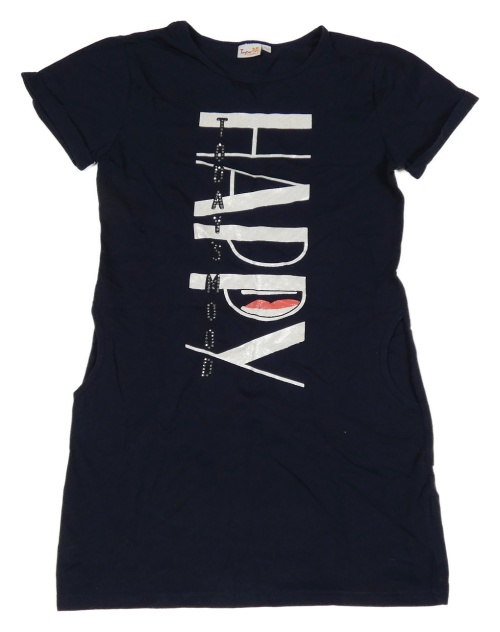 Tmavomodré bavlněné šaty s nápisem