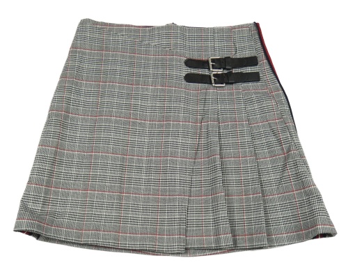 Černo-bílo-červená kostkovaná sukně s pásky C&A