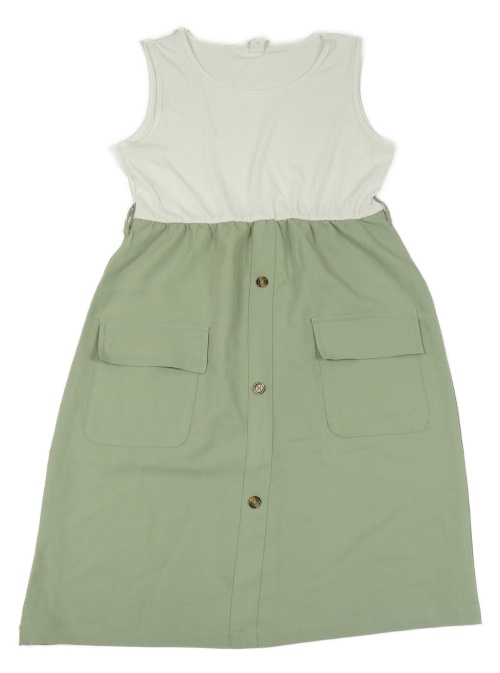 Bílo-zelené šaty s knoflíky a kapsami Shein