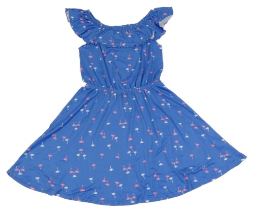 Modré šaty s palmami a volánkem Y.F.K.