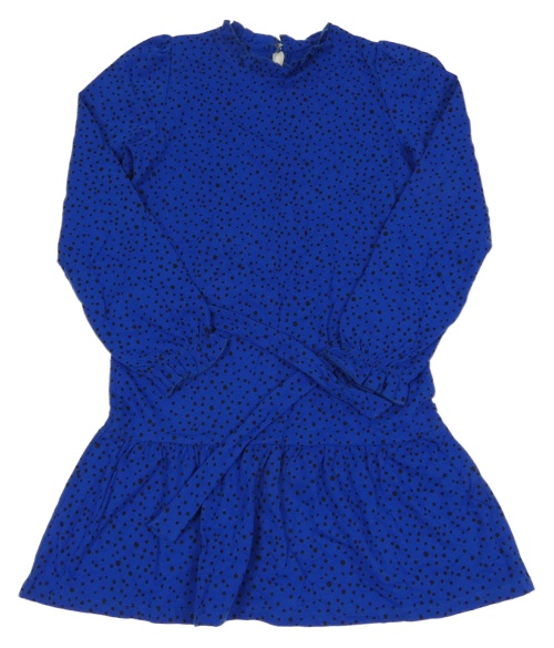 Modro-černé puntíkaté šaty s volánkem a páskem WE
