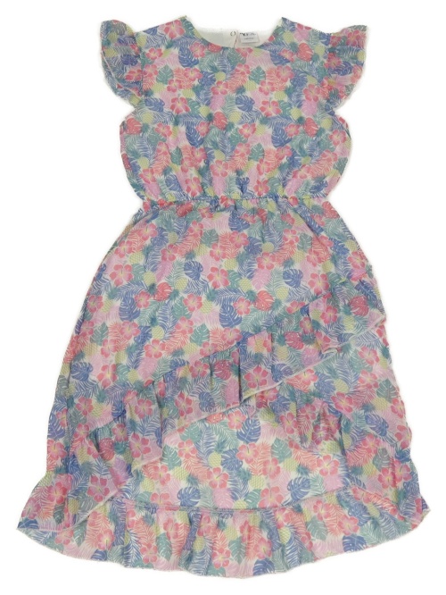Bílo-modro-barevné šifonové šaty s listy a ananasy Y.F.K.