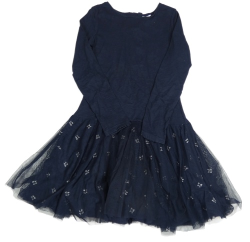 Tmavomodré teplákovo/tylové šaty se stříbrným vzorem OKaïdi
