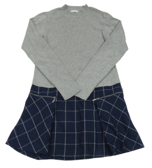 Šedo-tmavomodré svetrové vlněné šaty s kostkovanou sukní Okaidi