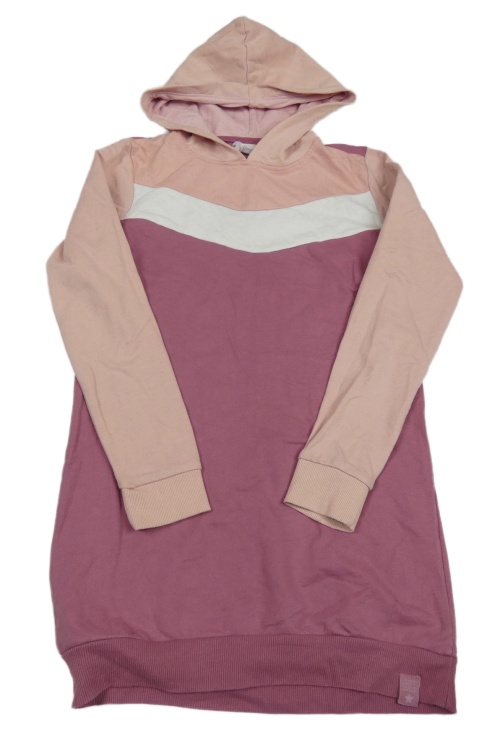 Růžovo-bílo-vínové teplákové šaty s kapucí