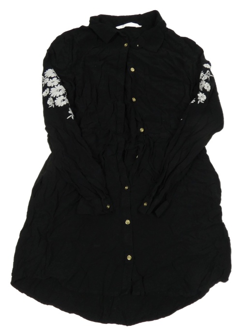 Černé propínací lehké šaty s výšivkami květů a límečkem H&M