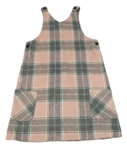 Šedo-světlerůžovo/světlemodro-smetanové kostkované cargo vlněné šaty Matalan