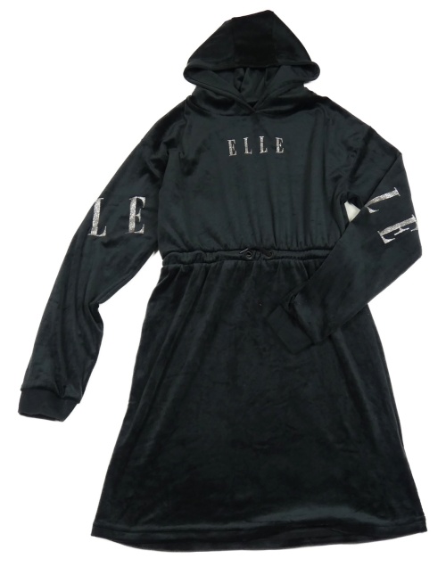 Černé sametové šaty s logem a kapucí Elle