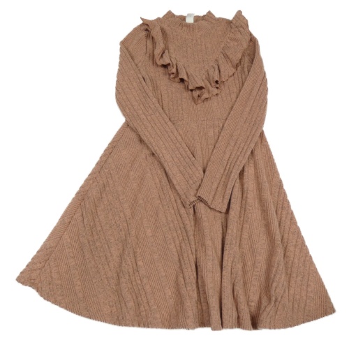 Pudrovo-šedé melírované žebrované úpletové šaty s volánky a rolákem SHEIN