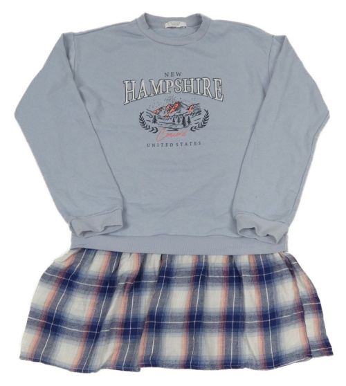 Světlemodrofialovo-kostkované teplákovo/bavlněné šaty s nápisy a horami PRIMARK