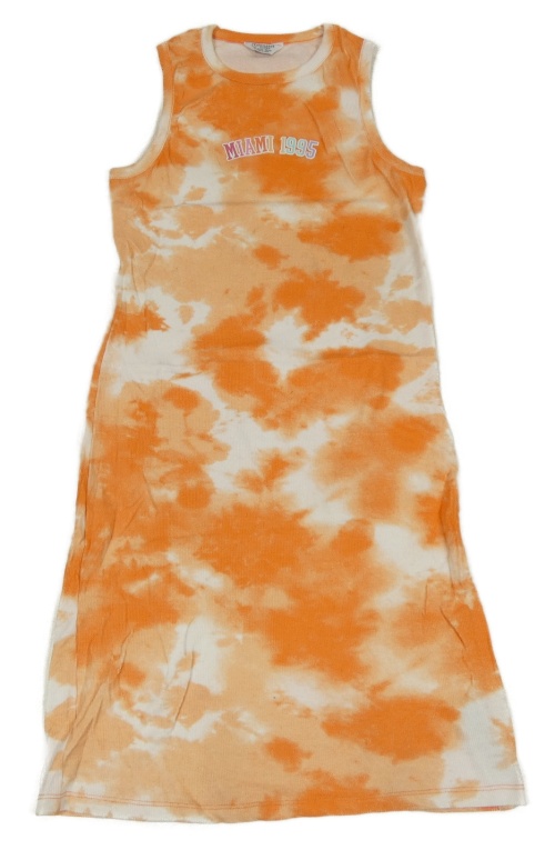 Oranžovo-bílé batikované žebrované elastické šaty s nápisem Primark